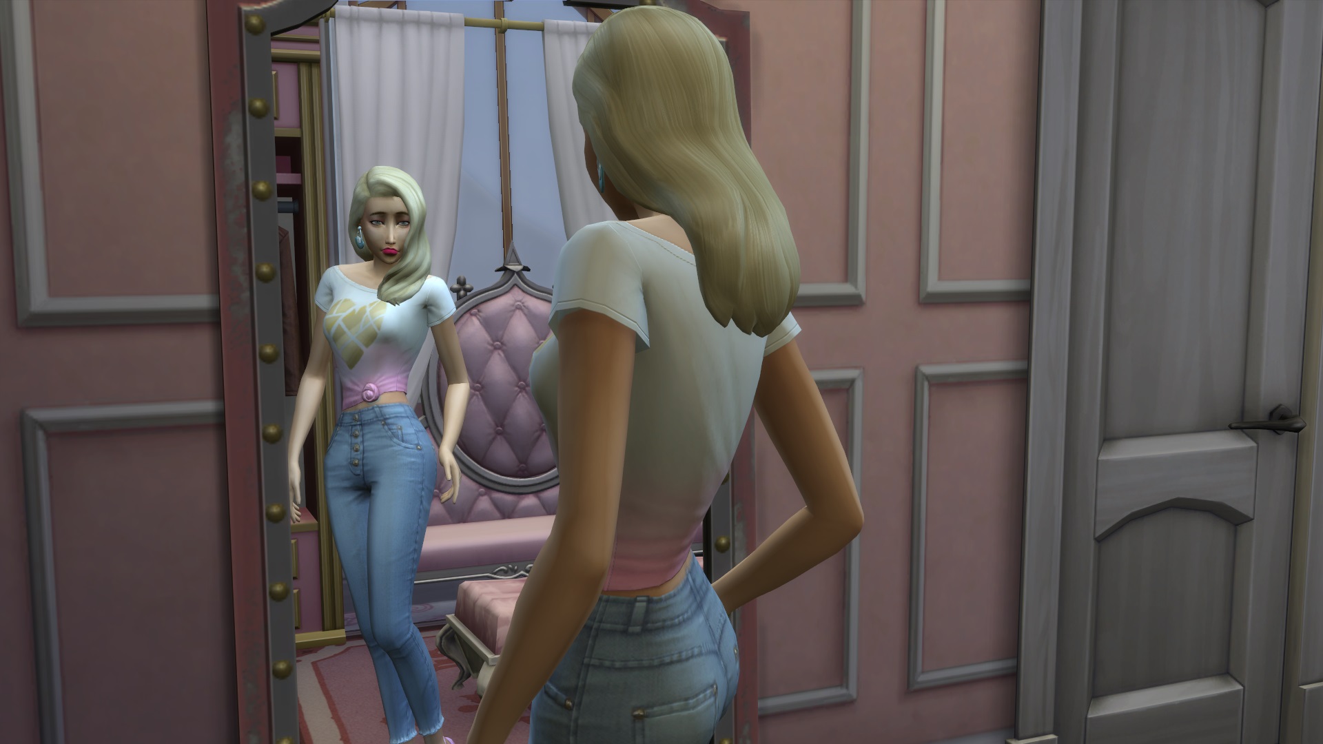 April glanced one last time at her reflection in her chosen attire, hearing Sandy’s voice echoing in her head. That outfit makes you look so fat and what is your hair doing? It would have to do.