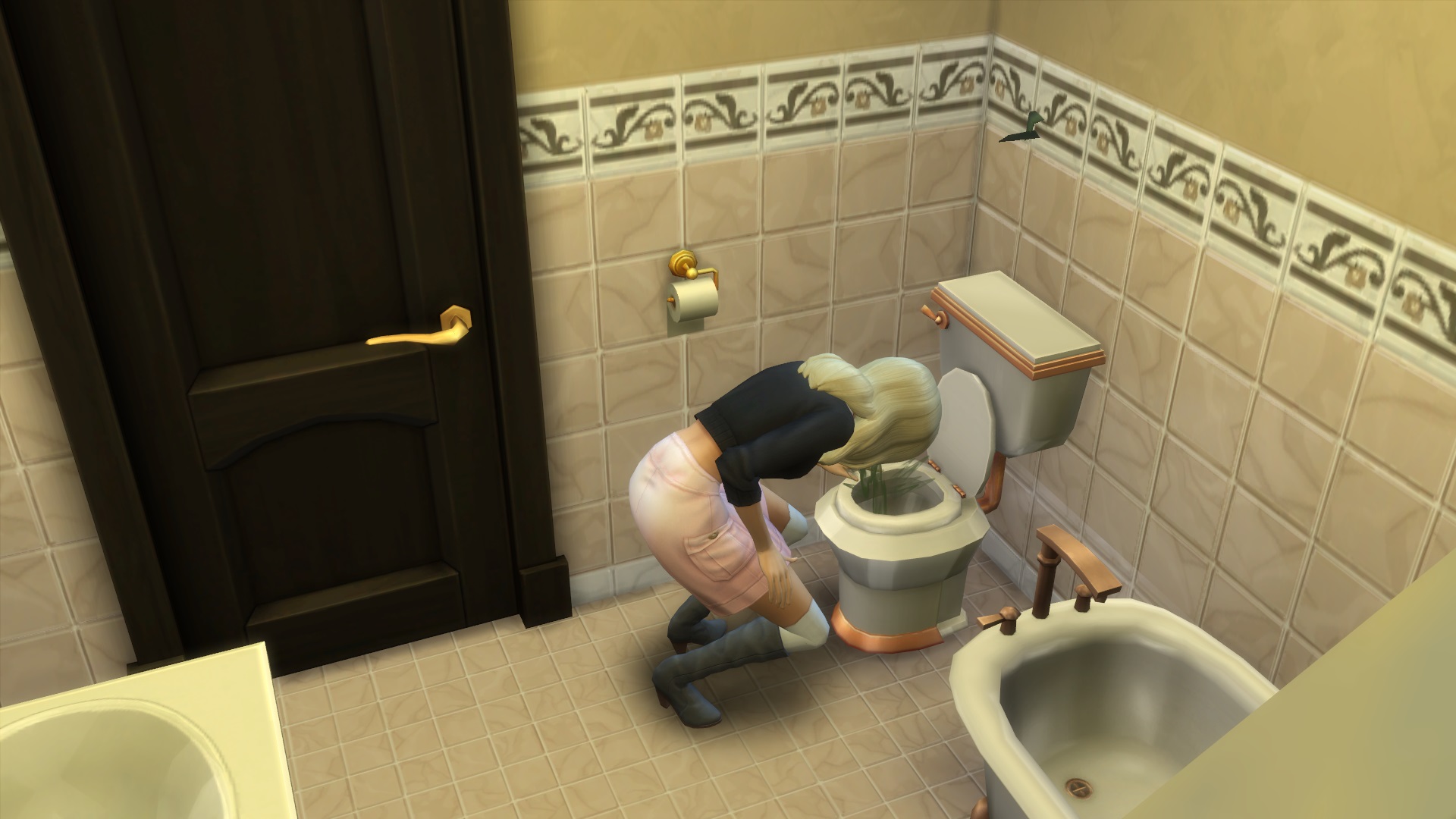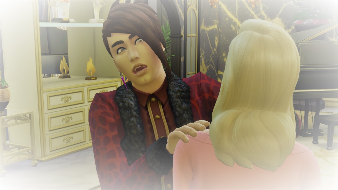 She seemed to have figured out that as a vampire she may need blood instead of fruit salad, and luckily got a willing source too – unless nibbling on a wrist turns too, then there’d be two vampires with the same problems 😔