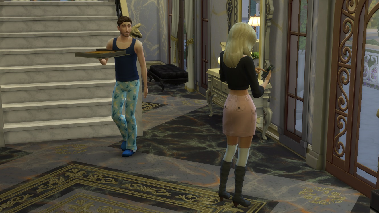 “So anyway we had dinner. I was asking him questions and he was ignoring me like I didn’t exist. Then the butler came in and dropped dessert right into this guy’s lap. Everyone freaked out. We were in the formal dining room, you know, next to that big mirror? Well I was looking in this mirror as everyone was flapping about it front of it and, I kid you not Mel, this Caleb guy didn’t have a reflection.”