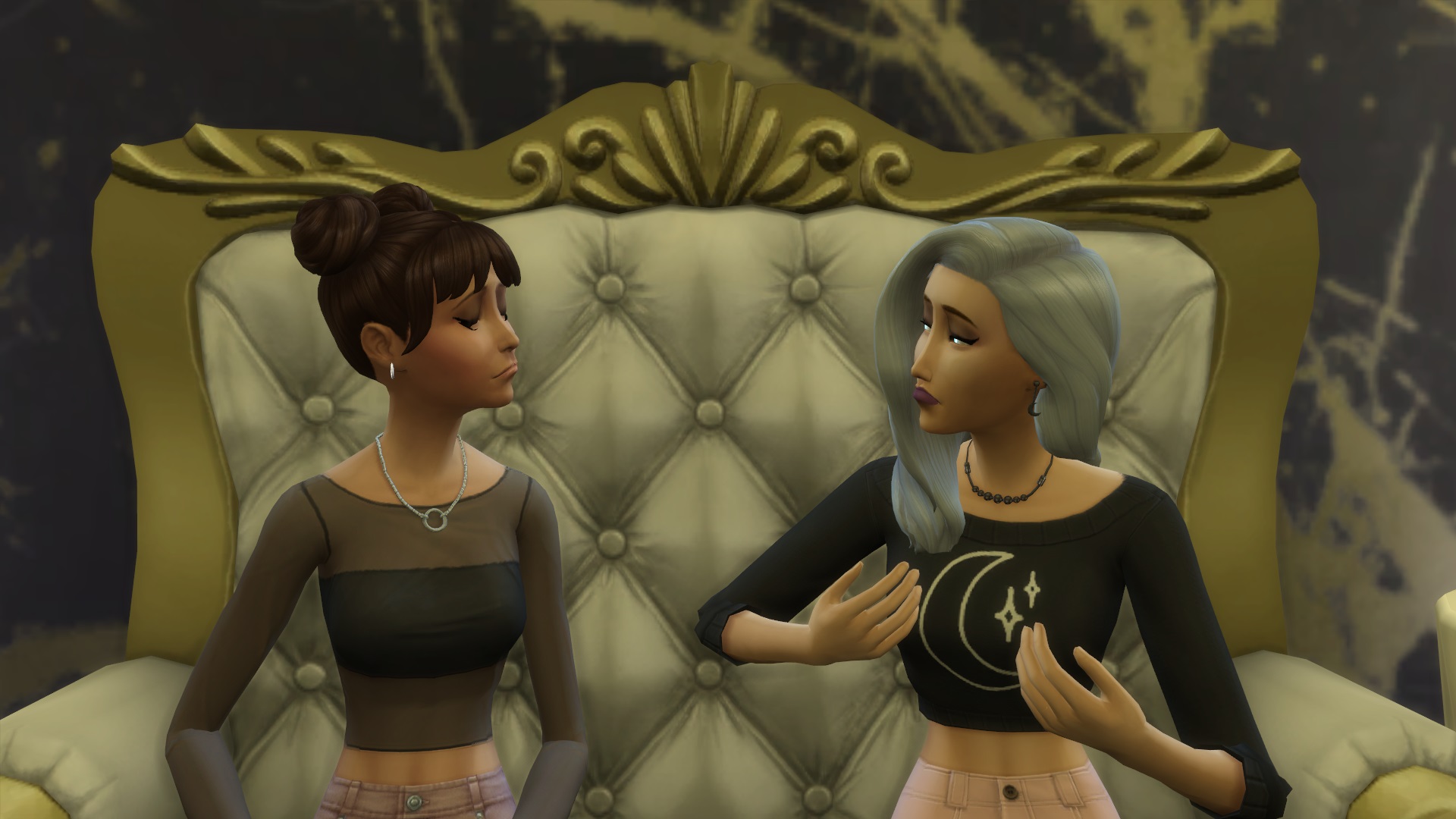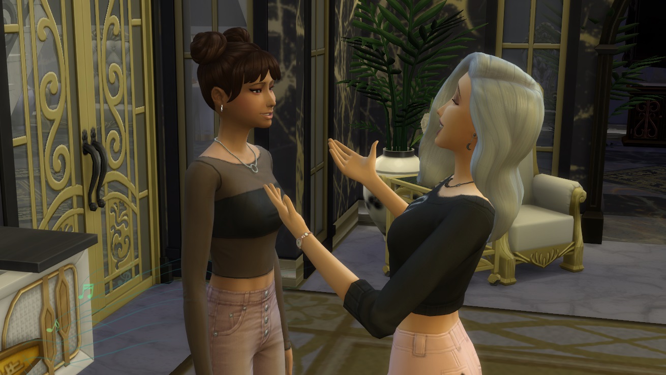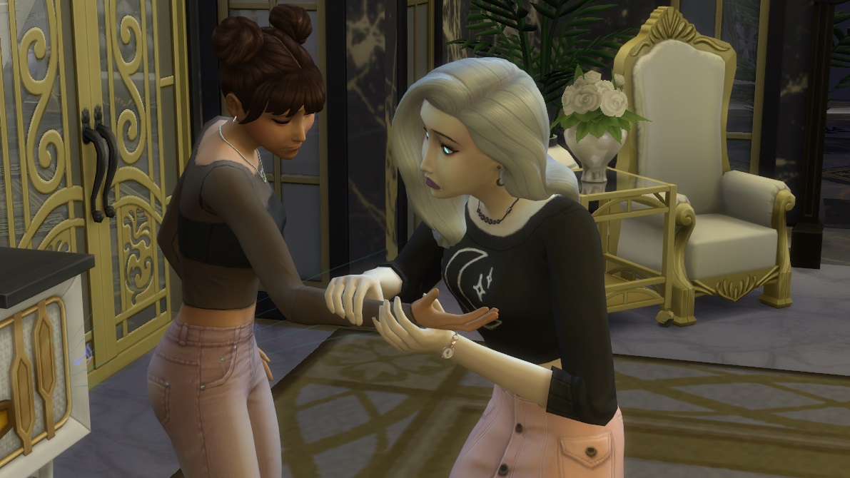 The two looked at each other, silent. Then without saying a word, April laced her fingers with Melinda’s and pulled her gently towards the nearest mirror.