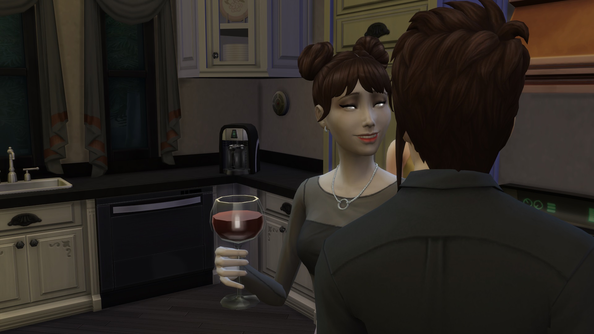 Lilith smiled. “That’s OK. I can tell you’re overwhelmed.” She filled up a glass and handed it to Melinda. “Here. As intriguing as your dark form is, I think I like you better the other way.”