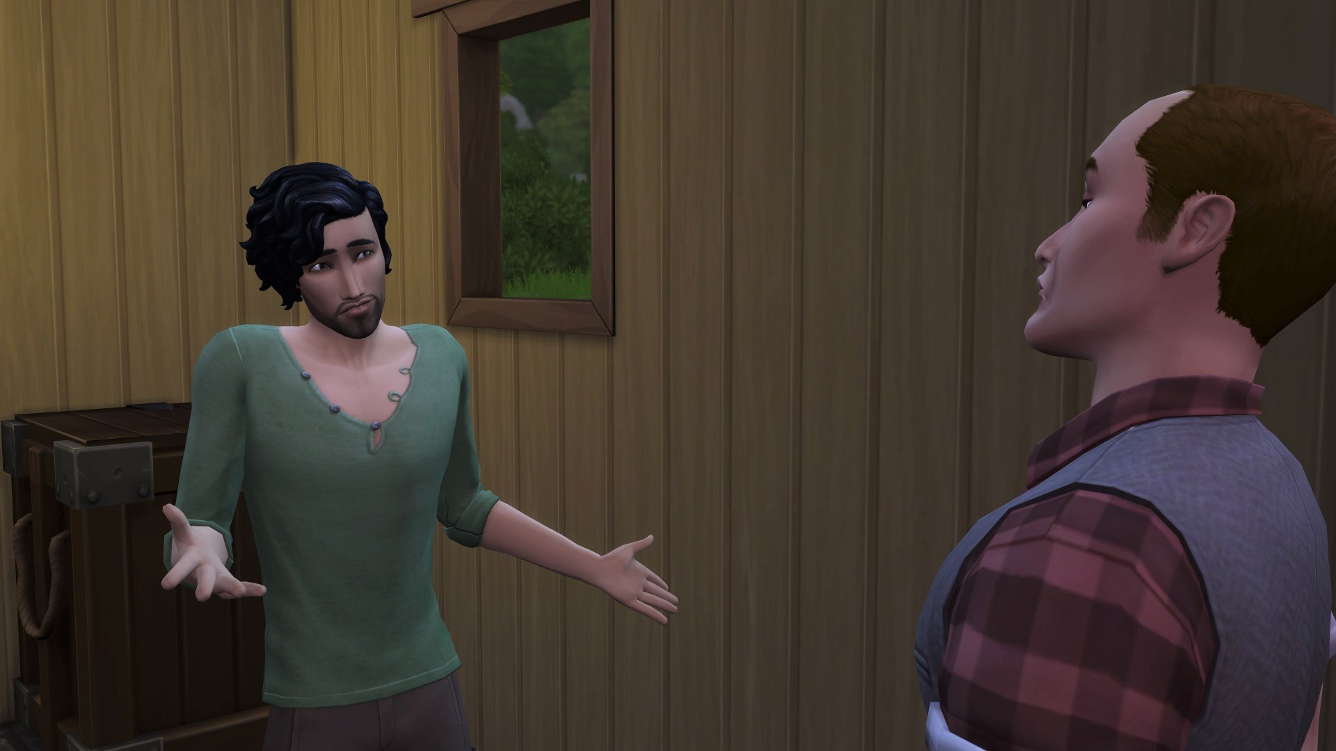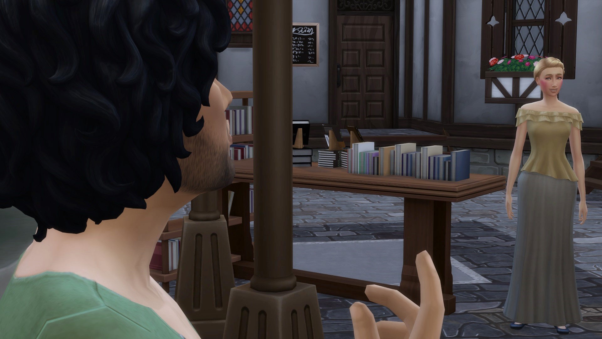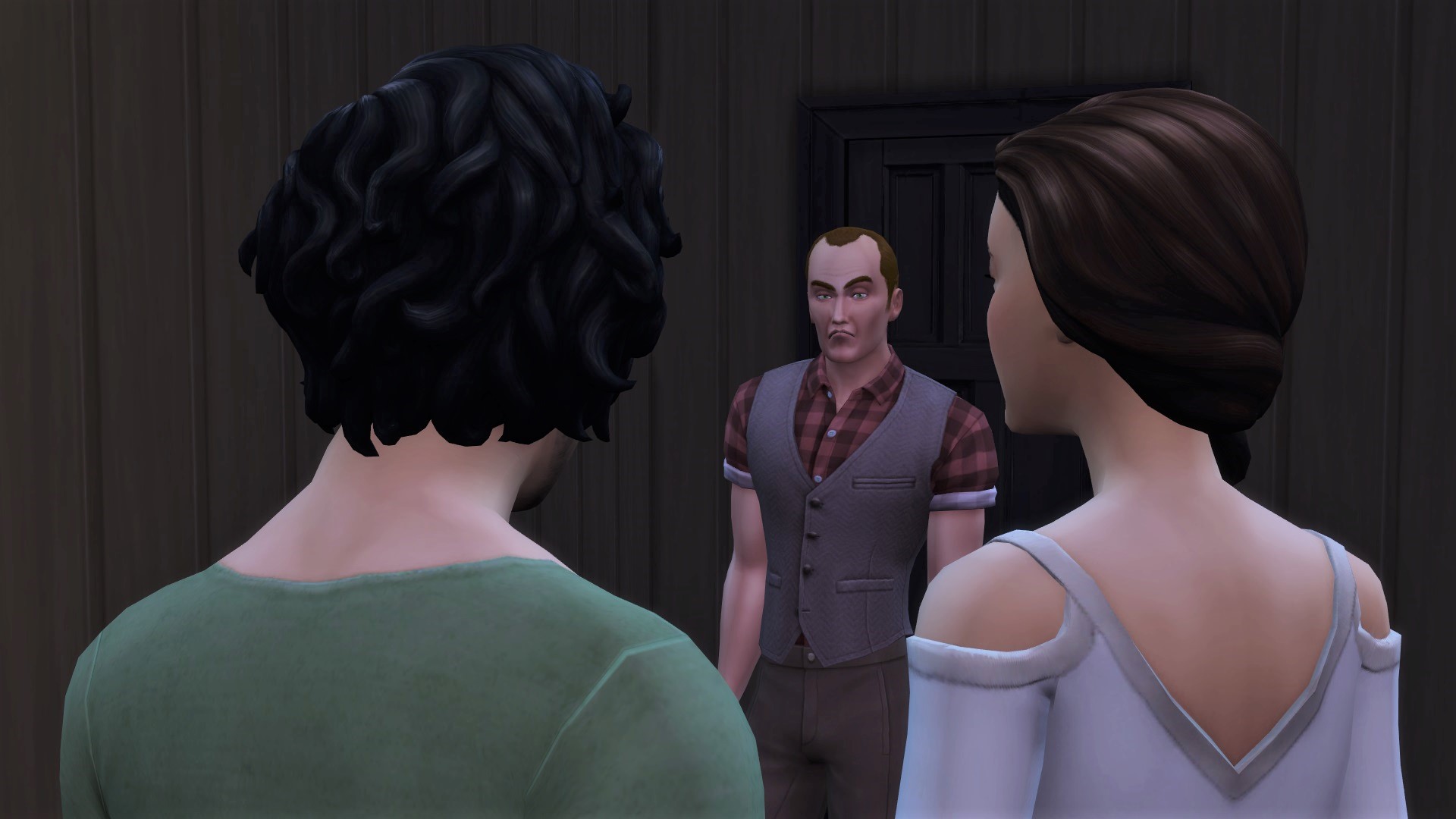 Fun fact: sometimes, with sims I really like, I don’t let them have babies and risk their genetics getting all borked, so I clone them, age them down and make them related instead. I liked Noah’s face so he, his son and Chuck (300 years was represented by 3 generations in game because… lazy) are all the same sim, but tweaked slightly. 🤓 “Noah really needs to mind his own business” indeed. *Puts on devil’s advocate hat* Noah is, however, very much a part of the community that Seth says he wants to reintegrate into and the only ‘bridge’ he currently has, so if Seth truly does want to be part of that (very narrow-minded) community, he should listen to Noah, marry Harriet and be miserable among friends.