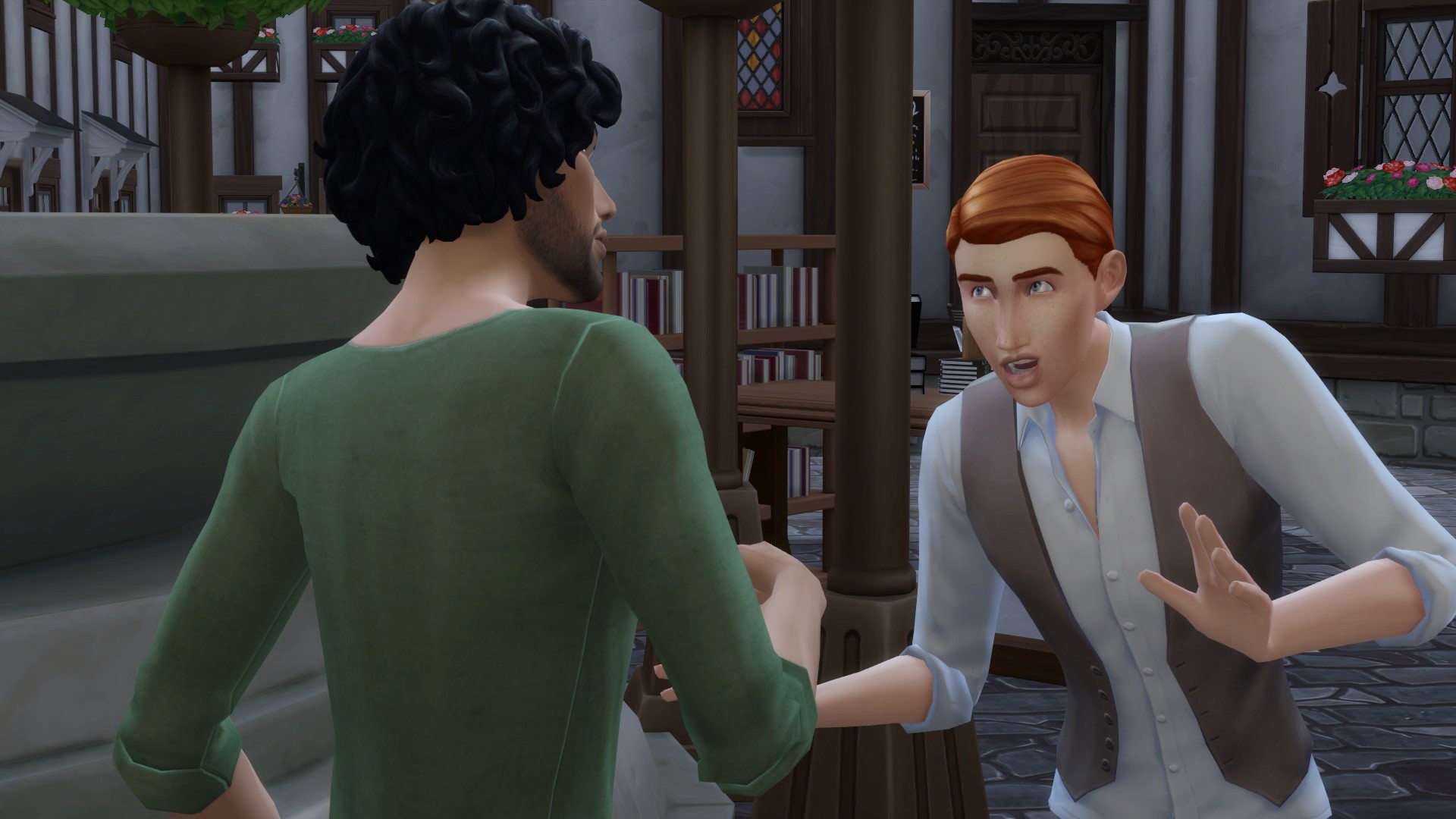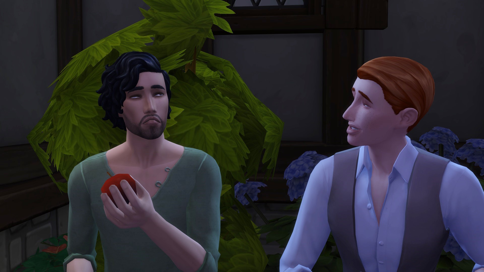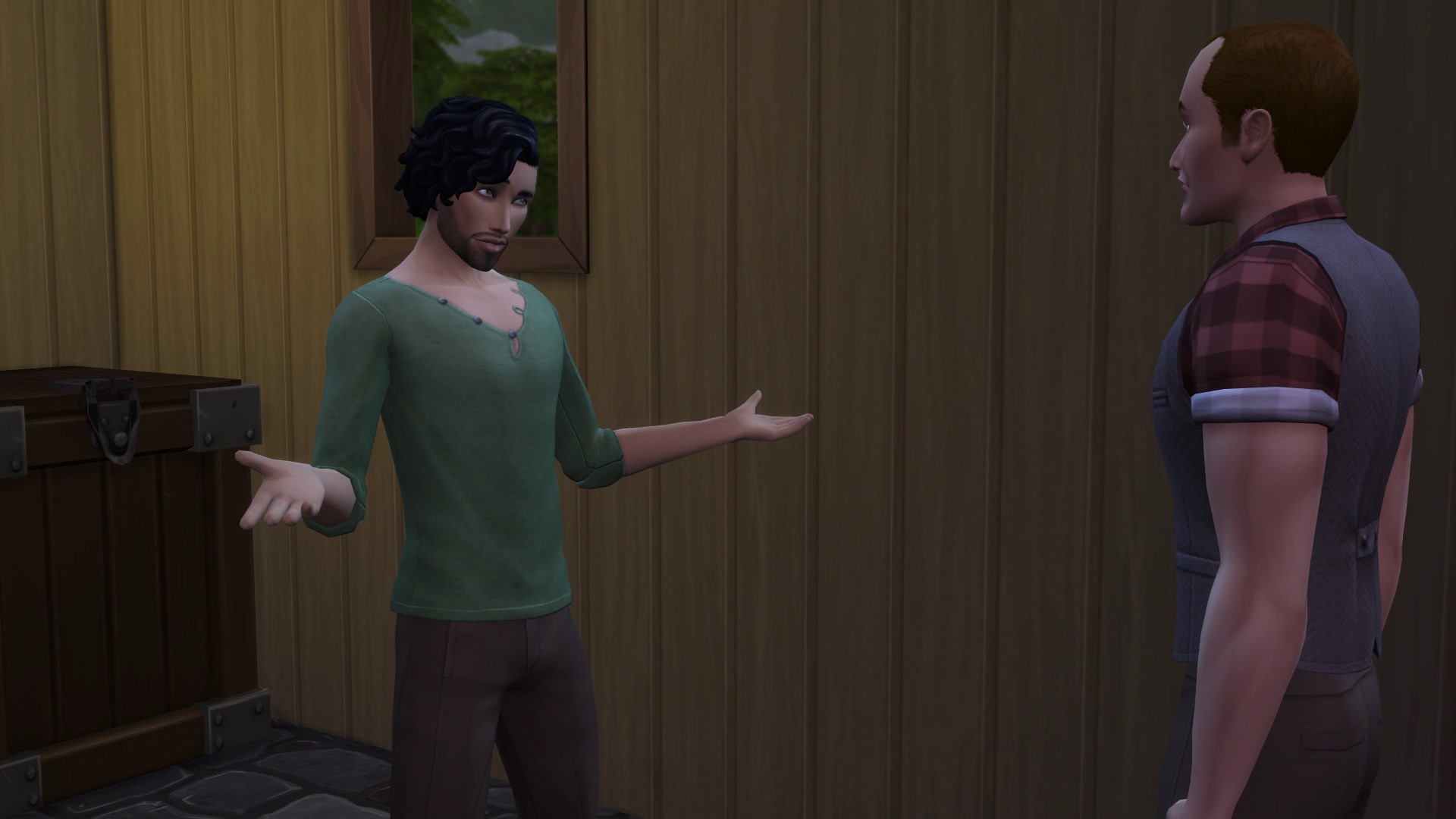 Fun fact: sometimes, with sims I really like, I don’t let them have babies and risk their genetics getting all borked, so I clone them, age them down and make them related instead. I liked Noah’s face so he, his son and Chuck (300 years was represented by 3 generations in game because… lazy) are all the same sim, but tweaked slightly. 🤓 “Noah really needs to mind his own business” indeed. *Puts on devil’s advocate hat* Noah is, however, very much a part of the community that Seth says he wants to reintegrate into and the only ‘bridge’ he currently has, so if Seth truly does want to be part of that (very narrow-minded) community, he should listen to Noah, marry Harriet and be miserable among friends.