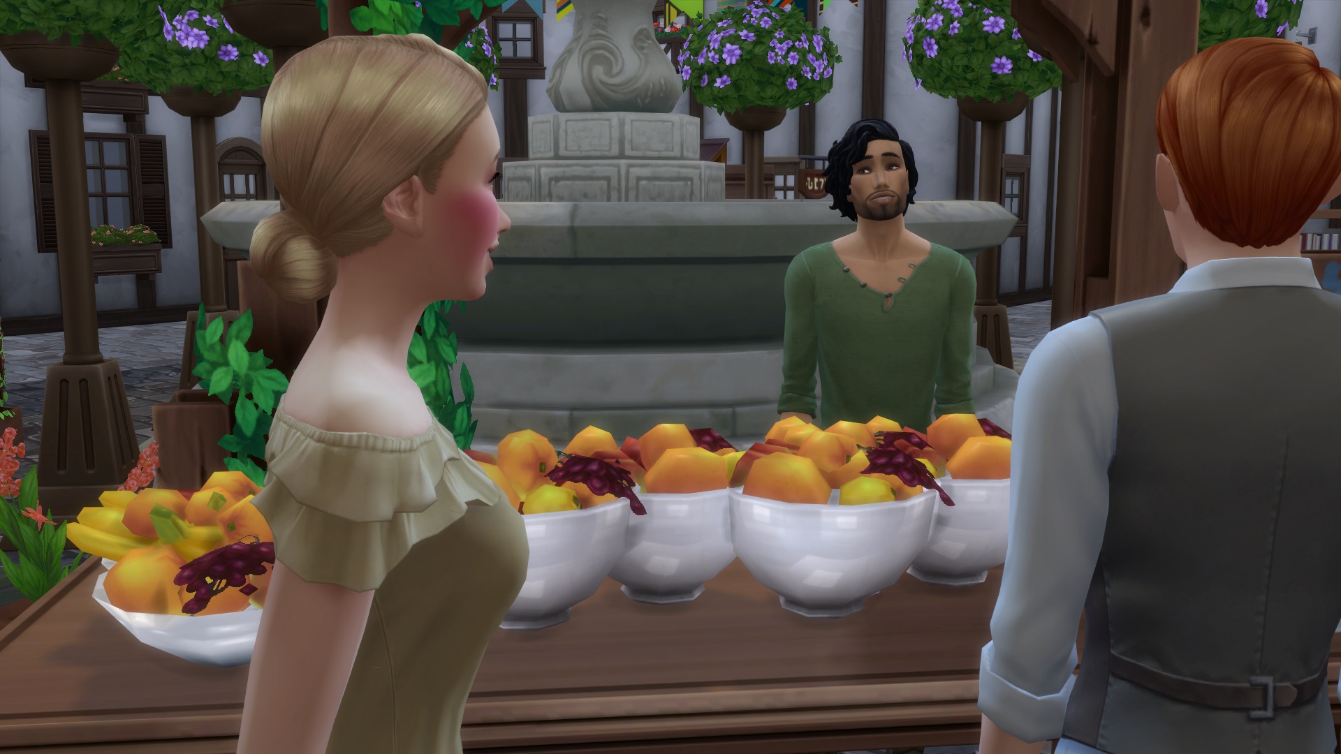 In the real 1600s, vegetarianism was crazy. In Sims 1600s, all my poorest sims survive purely on harvestables and what they find in bins, so I thought it wasn’t too far-fetched. 😆 And another way for him to embrace being an outsider, bonus.