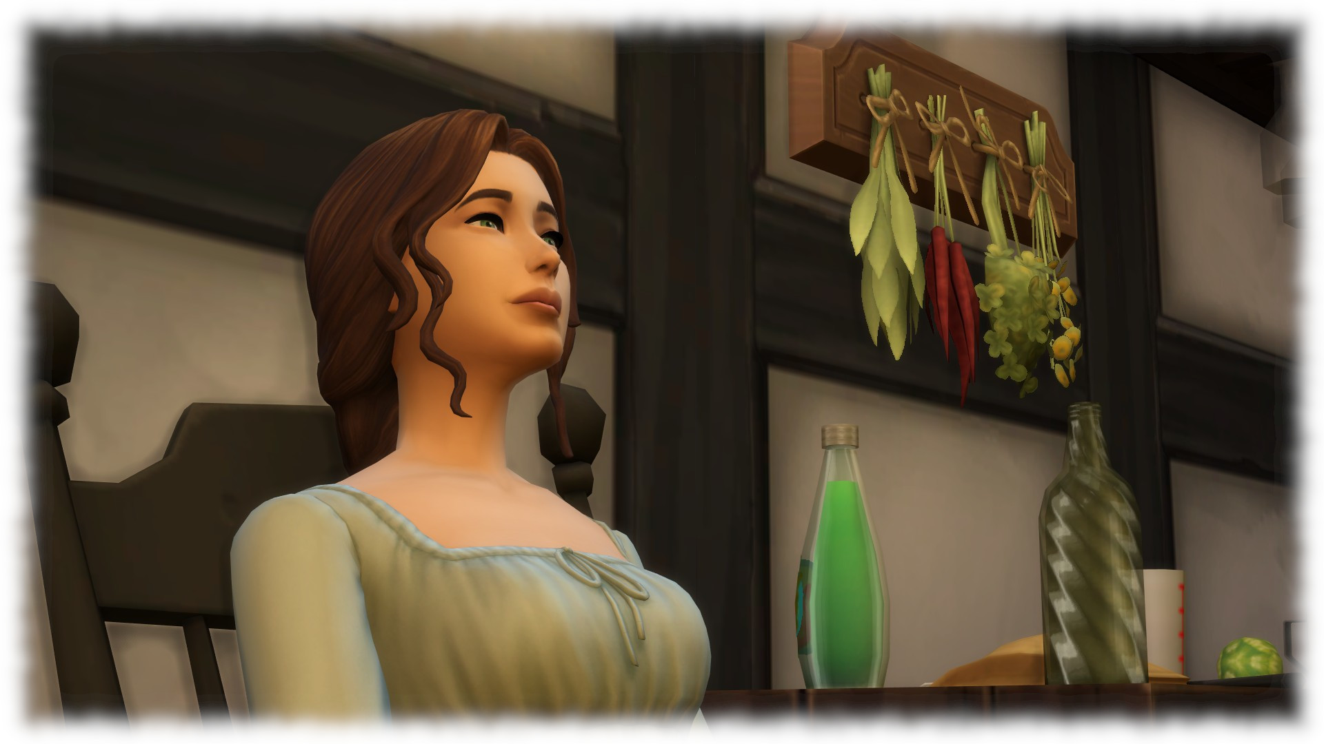 Ooookay, so what do we have here? First off, let me say the new haircut suits April so much! And generally, bless the devs for the Cottage Living, right? The clothing fits those olden times so well.