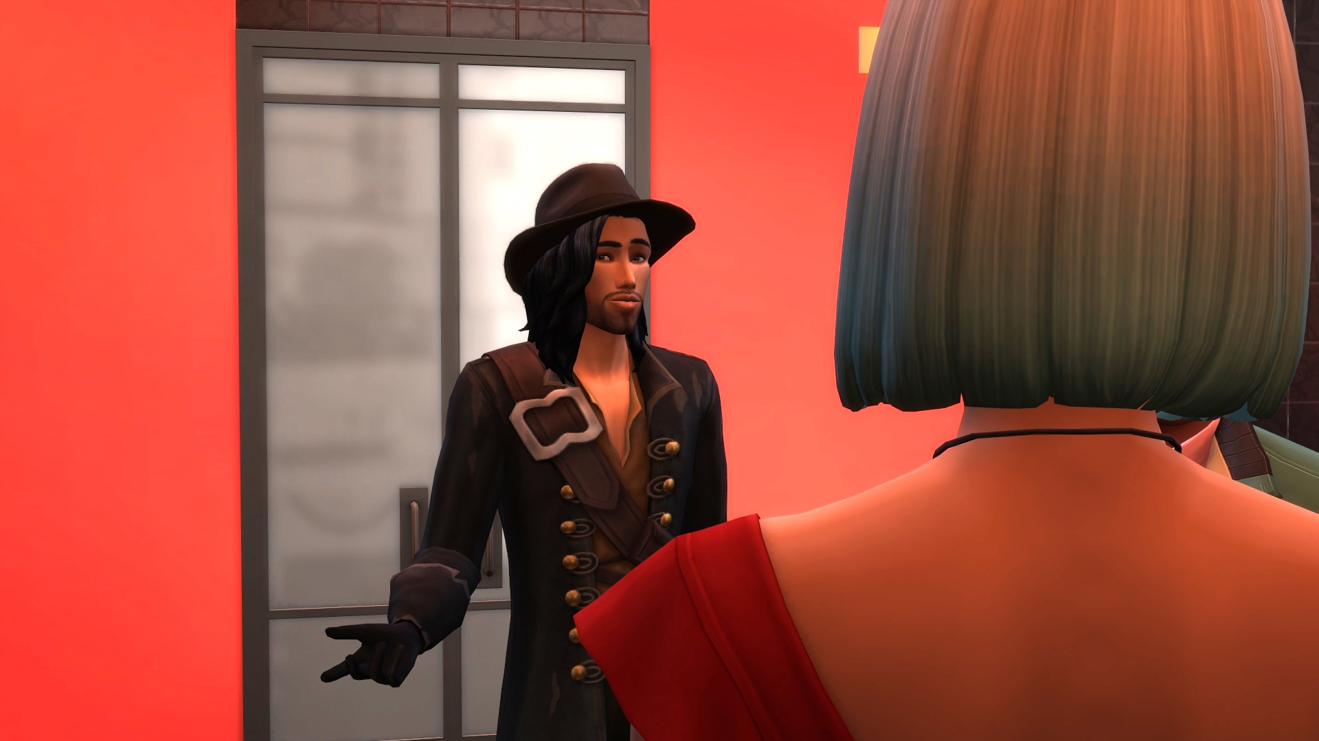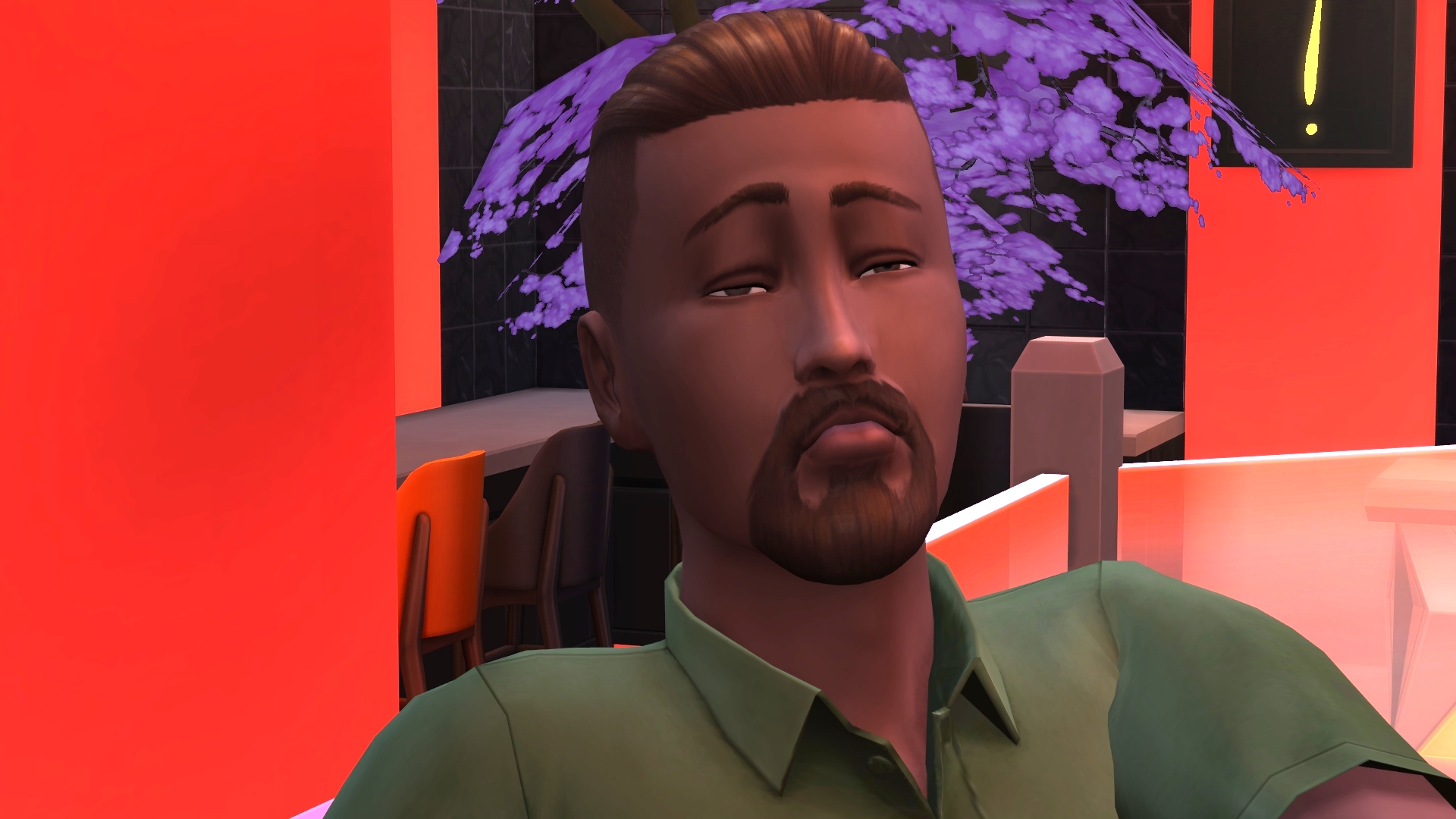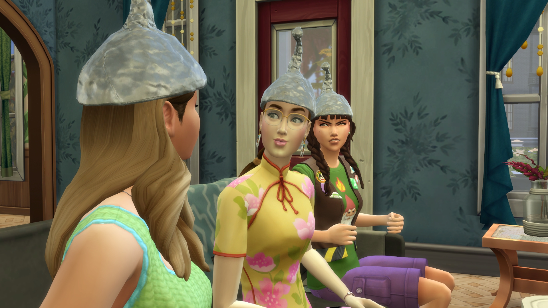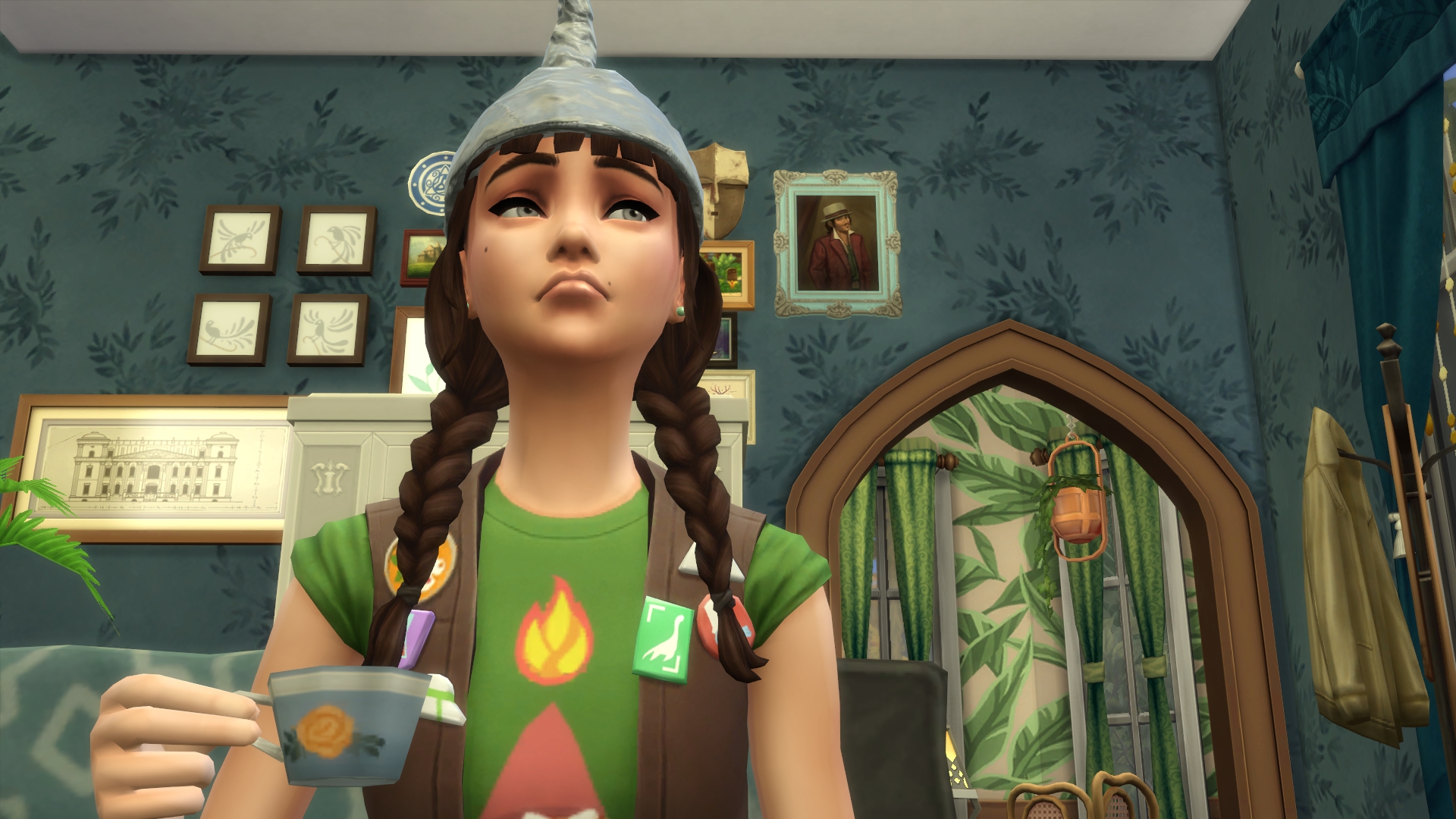1. Maybe Yibbo is secretly very pleased about all these chances to encounter Grim, but trying to not seem too keen? Mostly I am guided in GliTS scenes by the moods of the sims and Yibbo gets tense whenever there are more than a few sims in a room, hence all her miserable faces. I am endlessly inspired as to what the heck has happened in the scene that makes Yibbo pouty but is simultaneously making Morag SMILEYHAPPYCRAZY. 😆 Paul sort of hinted that he was trapped in the forest forever but more on that later. Woo! Trespass! I think it might be breaking and entering but Jessica is a cop so that’s OK, right? I’ll go with yes.
