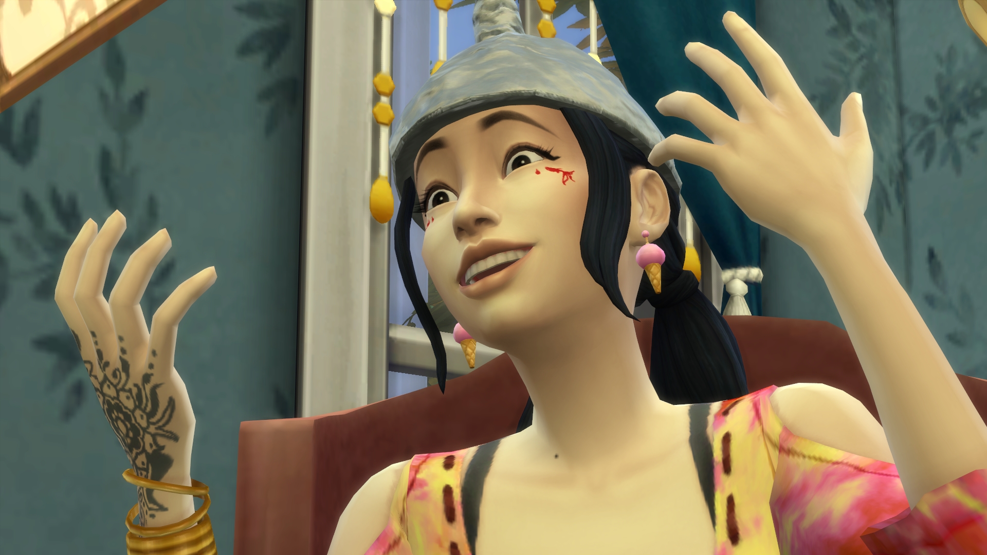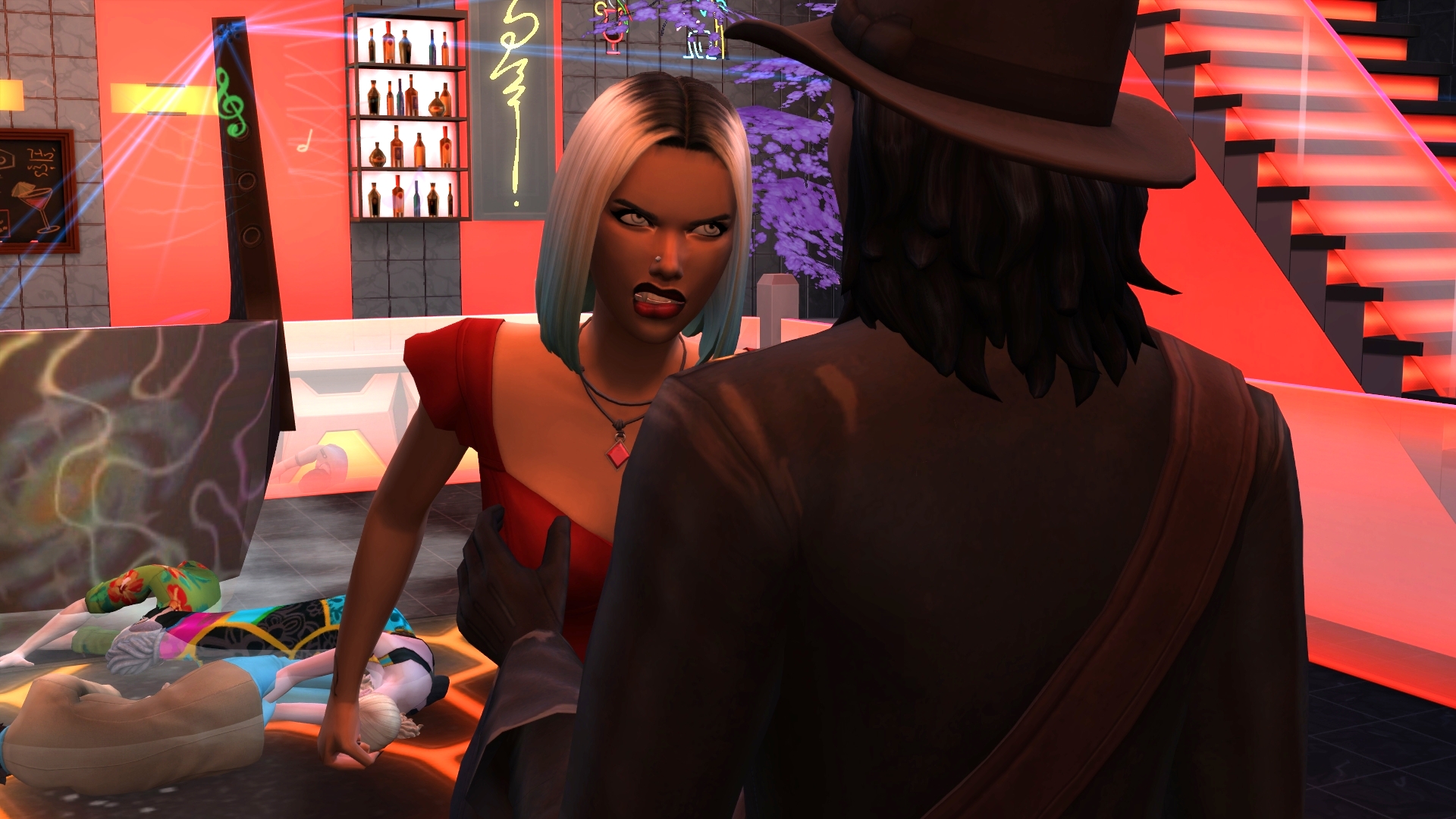 “I don’t know what you’re talking about,” she hiccupped, tossing her hair. “I haven’t even had anything to drink!” She gestured to a human nearby. “Hey! You! Have you seen me have a drink?”