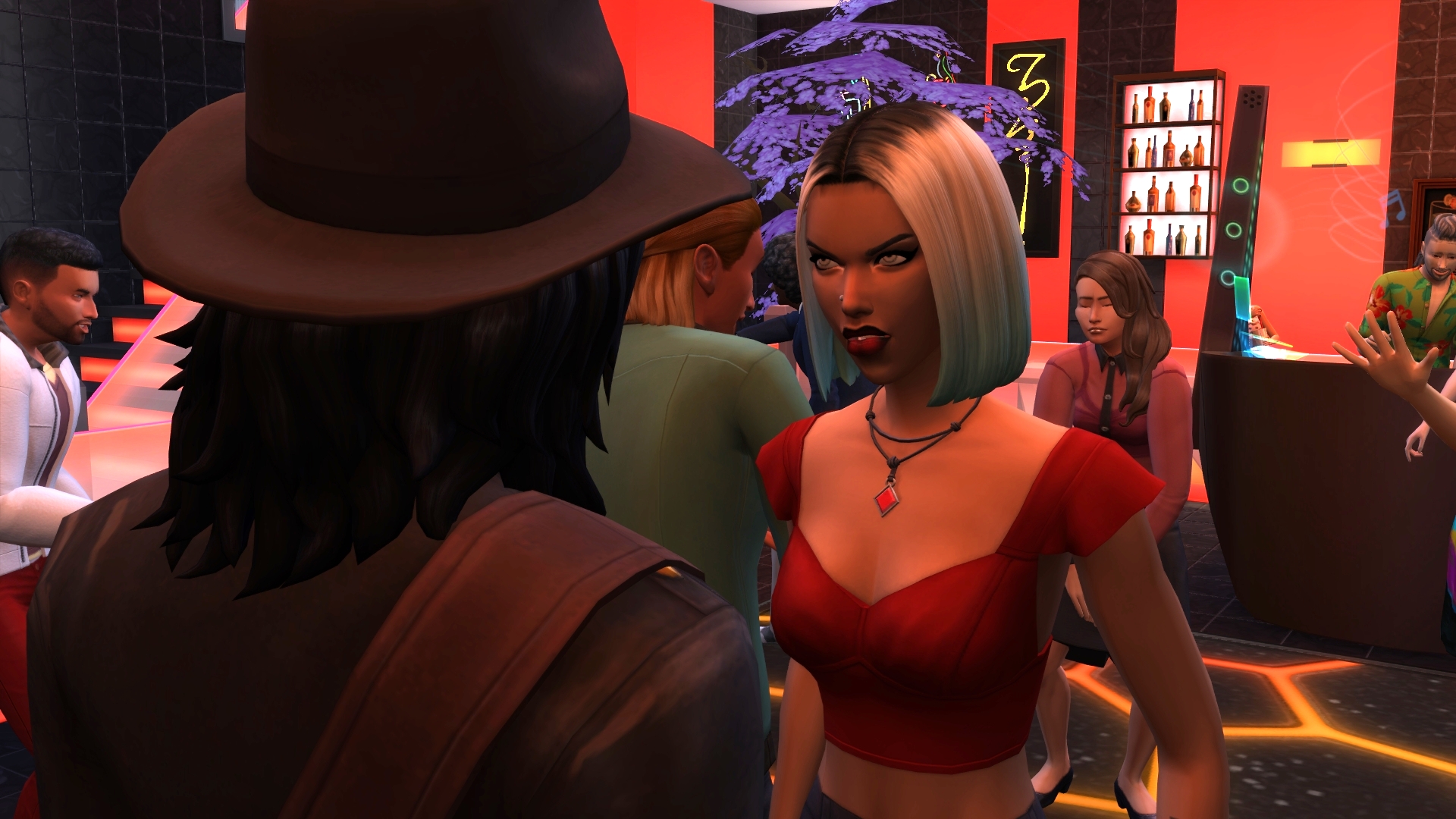“We’ll come back another time,” he said without thinking, briefly wondering why he was trying to please her, and silently cursing himself for committing to another night in this ear-bashing hellhole. “Come.”