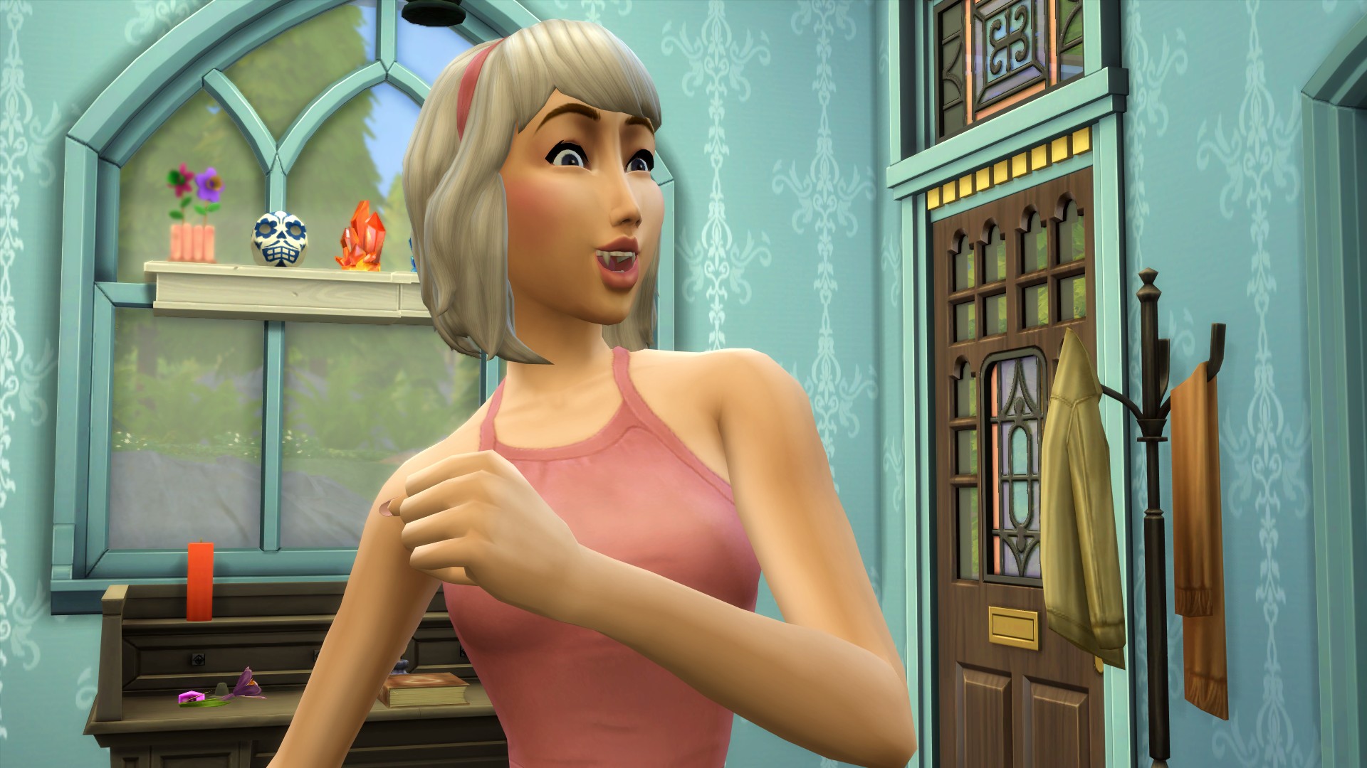 “Lilith will find the cure recipe in the swamp, I just know it! And then we can make the potion and then we’ll be human again by Winterfest! Will I be human? Or will I be half witch?” She pondered for a while before her attention was caught by something in another room. “Ooh, what is that?”