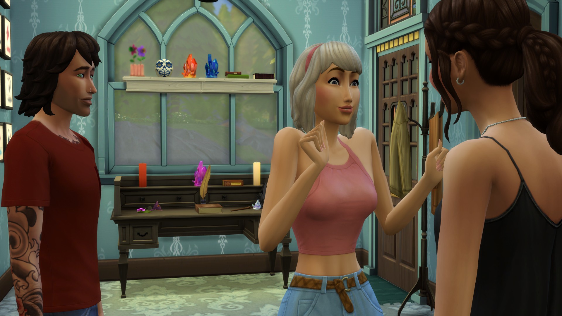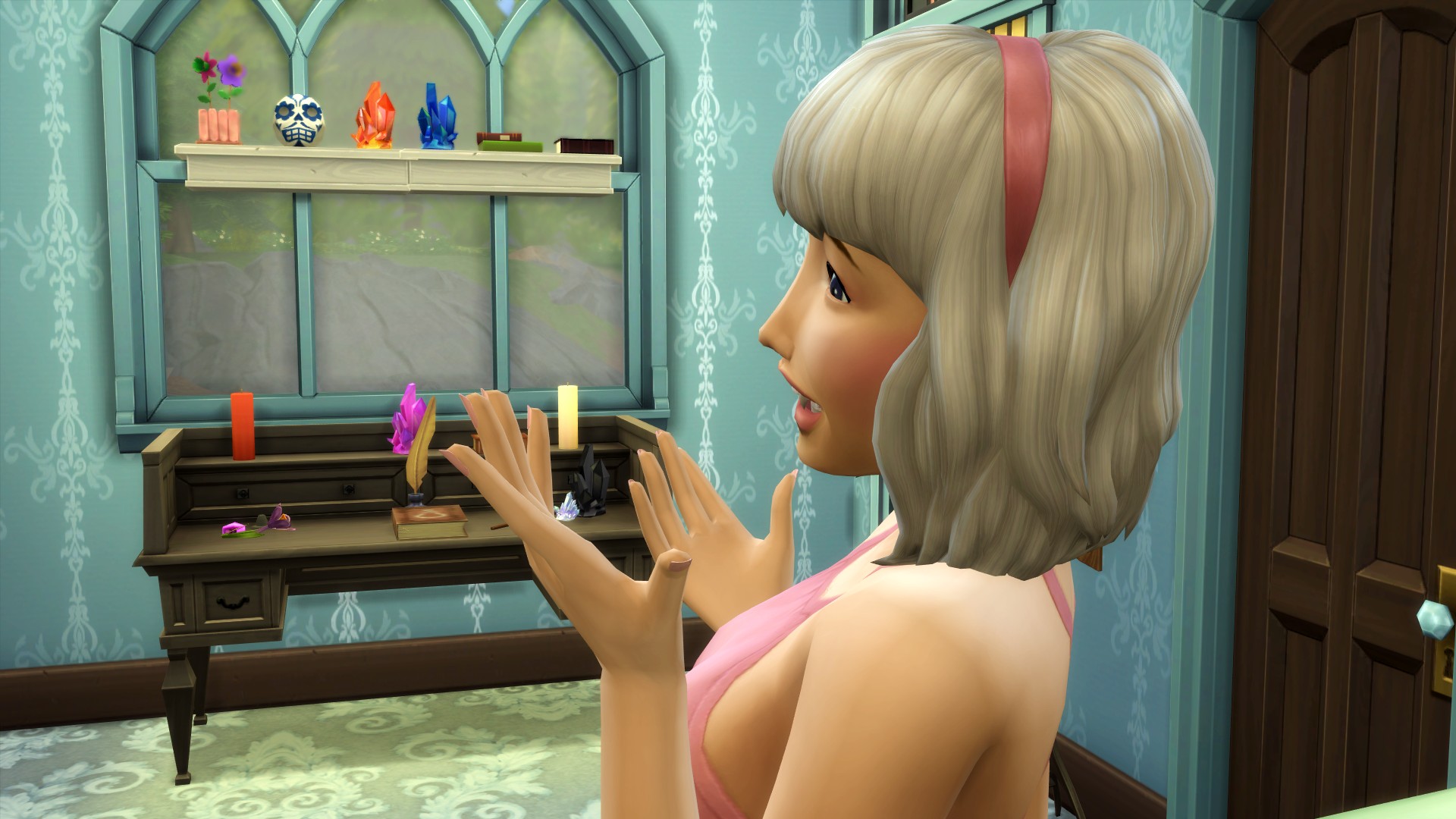 Before she had an answer, she’d continued to wander the room, oohing and ahhing over every magical artifact at Broof’s altar. She gently ran her fingertips over the crystals, the leather-bound books, and whispered, “Wow.”