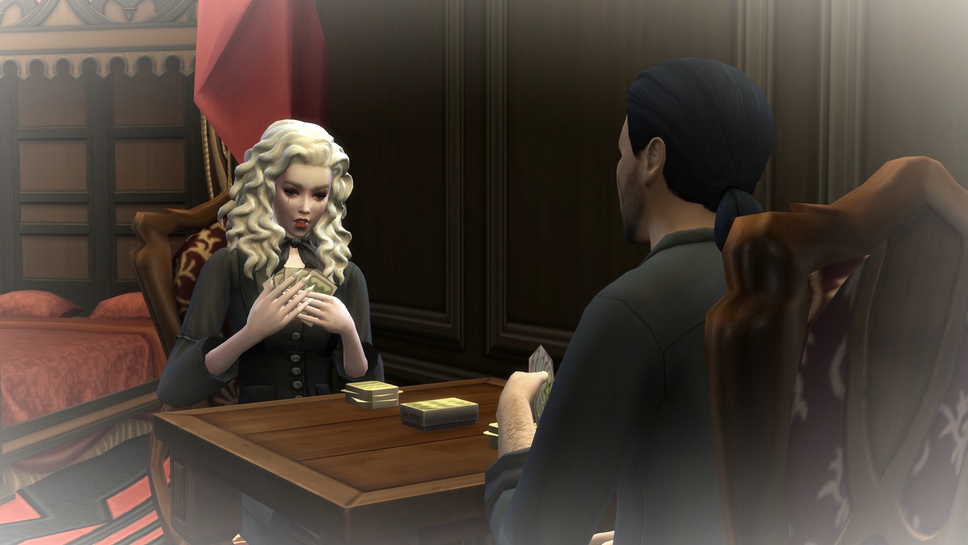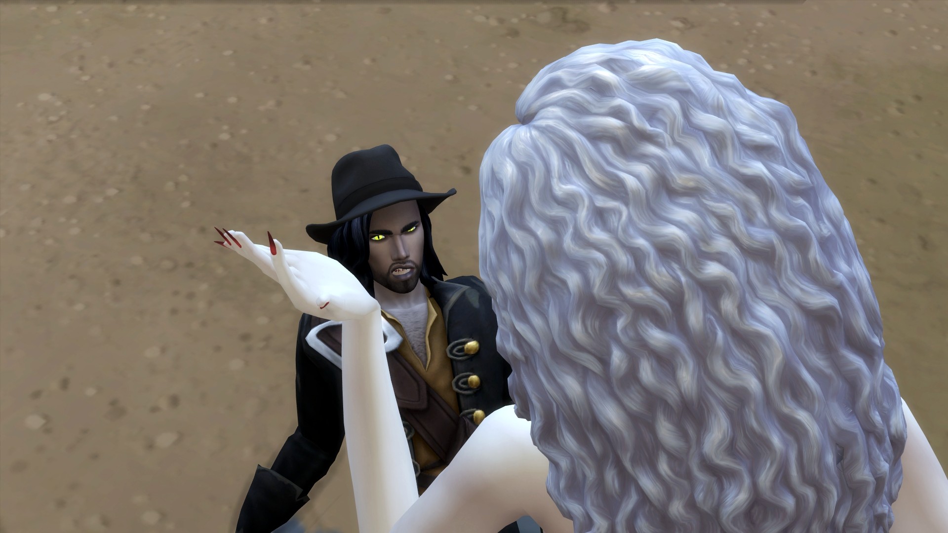 Kitty’s eyelid twitched “Oh! can you go five minutes without talking about that traitorous wench? I would sooner eat the woman than befriend her!” she composed herself. “Yes, Caleb is also my guest. My esteemed guest. A pure rogue free at last to pursue his interests and true nature, far from the noose of his sister,” Kitty laughed and tossed her hair. “He is a fine vampire – at least he shall be – but naturally his company is… lacking.”
