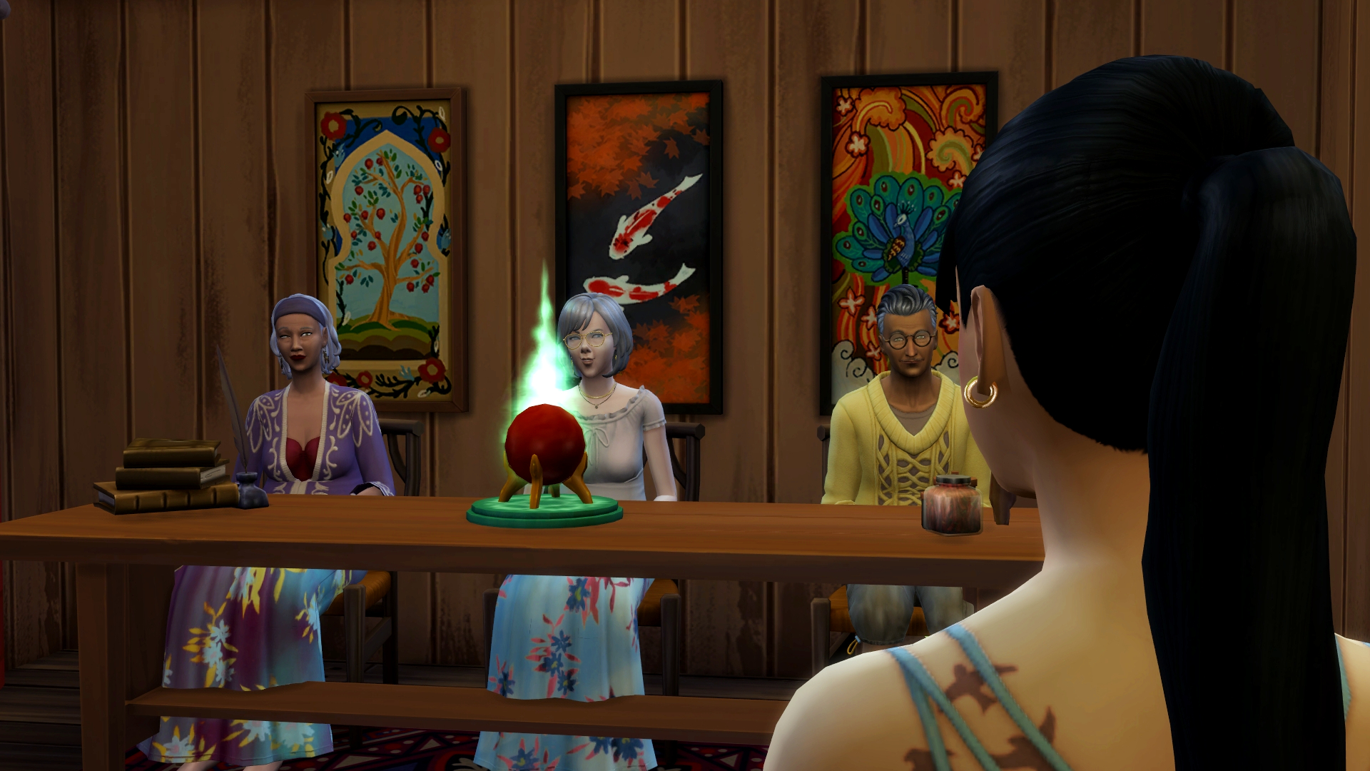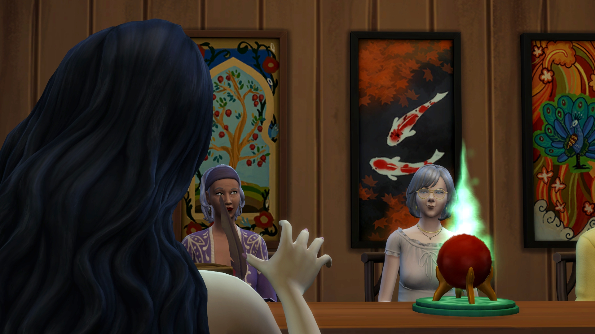 “Very well,” Deirdre said. She shifted her weight on the chair and focused on the ball before her, as did her fellow witches. “We will now combine our thoughts into the fire and reach our decision. Should the decision go in your favour, Ms. Vatore, the fire will glow yellow. Should it not, it will glow red. It should only take a moment. Do you understand?”