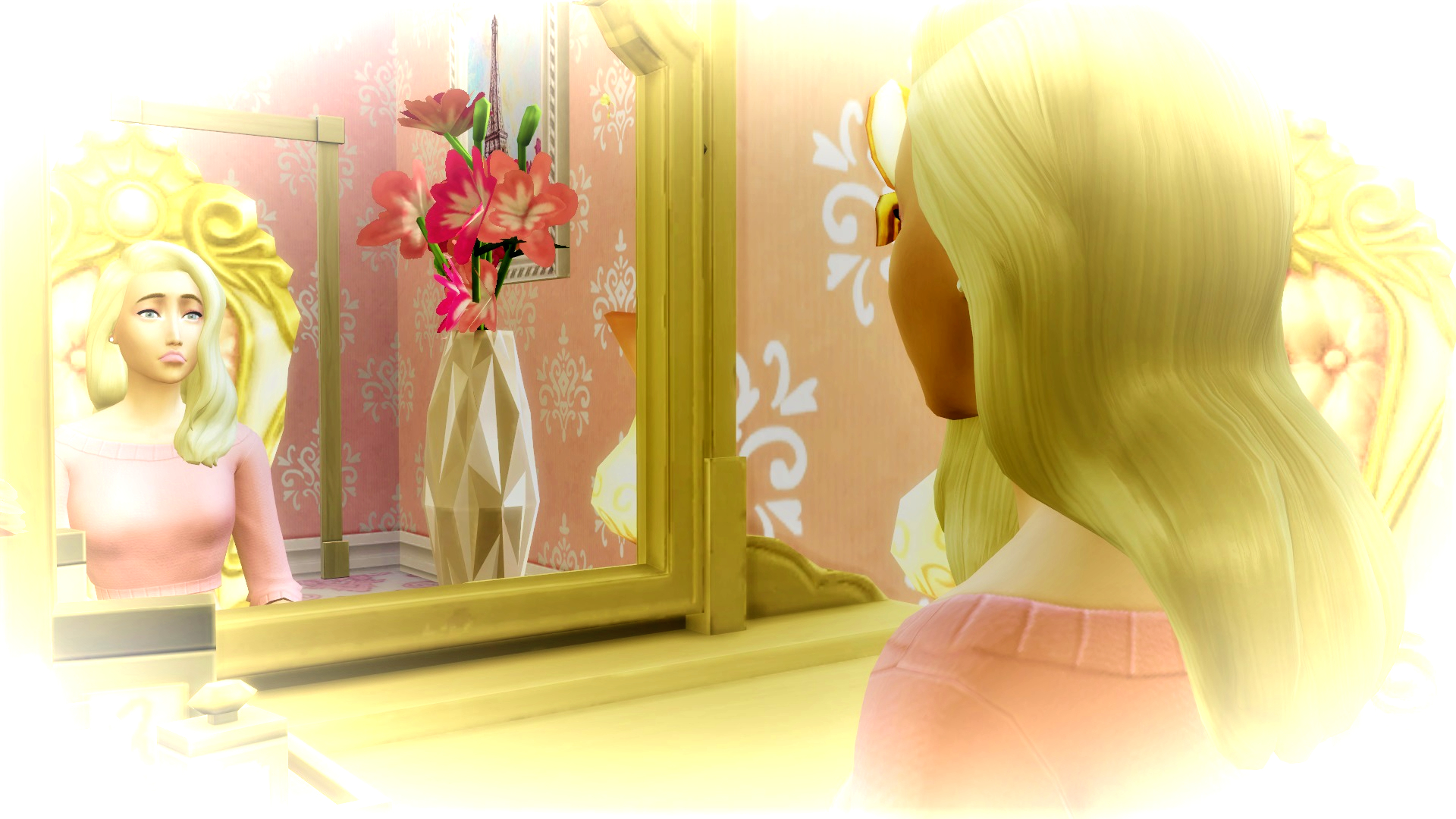 April put down her lipstick and decided not to do the rest of her routine. She wandered over to the other mirror in the room.