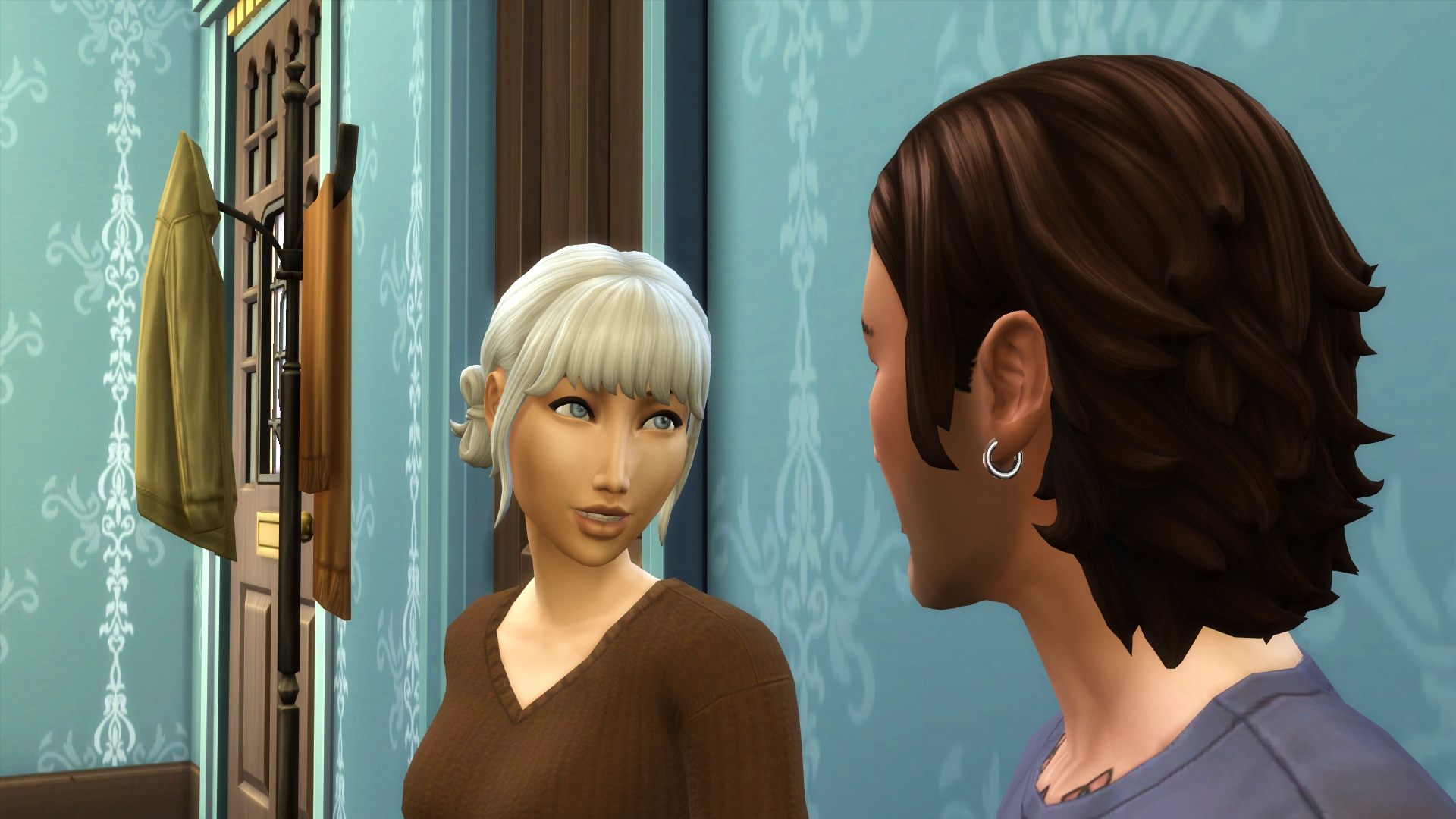 “Hey hey,” he said softly, lifting her chin and watching his character from the corner of his eye. The pixelated little fellow fall off the platform for the second time. “It’s okay, just don’t make a habit of snooping, yeah? Besides, that skirt is too nice to be kept in a box and heck knows it looks better on you than it ever would on him.”