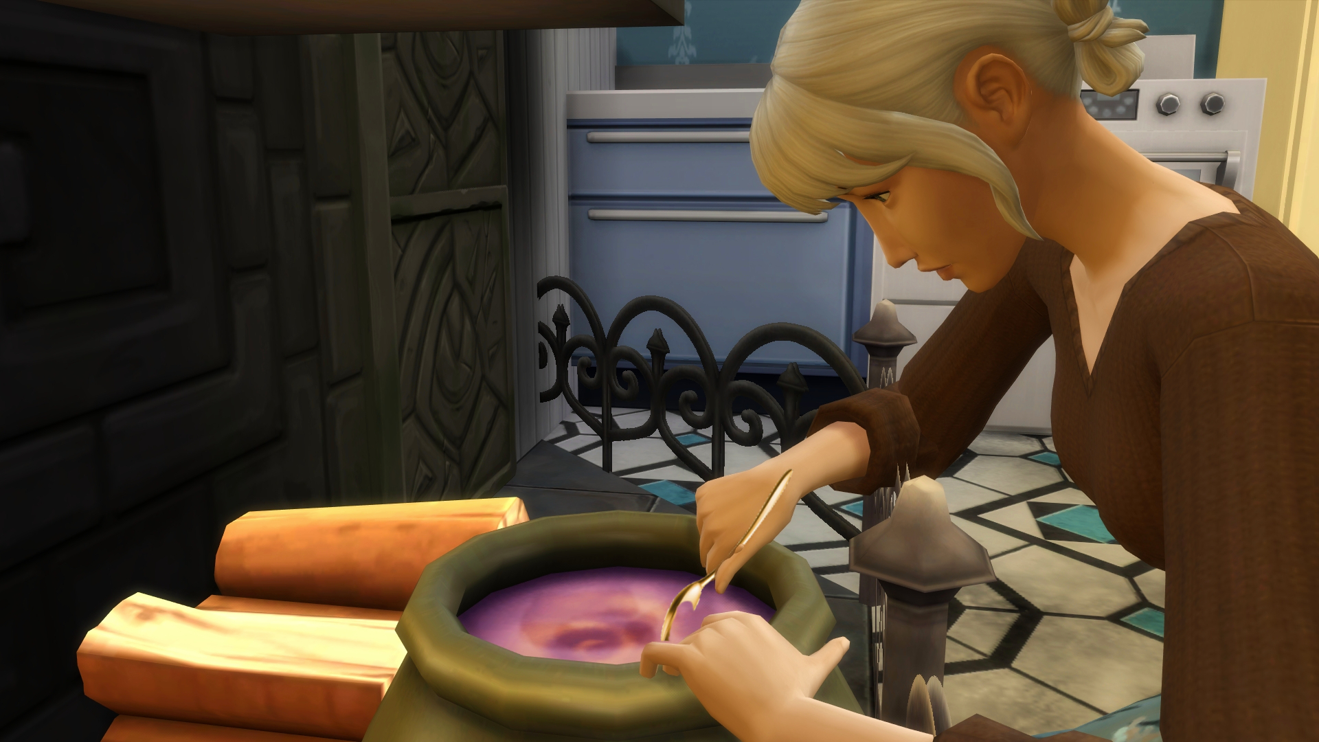 He couldn’t help but laugh as she threw a mini tantrum next to a cauldron full of purple goop. “Ah, Apes, you crack me up.”