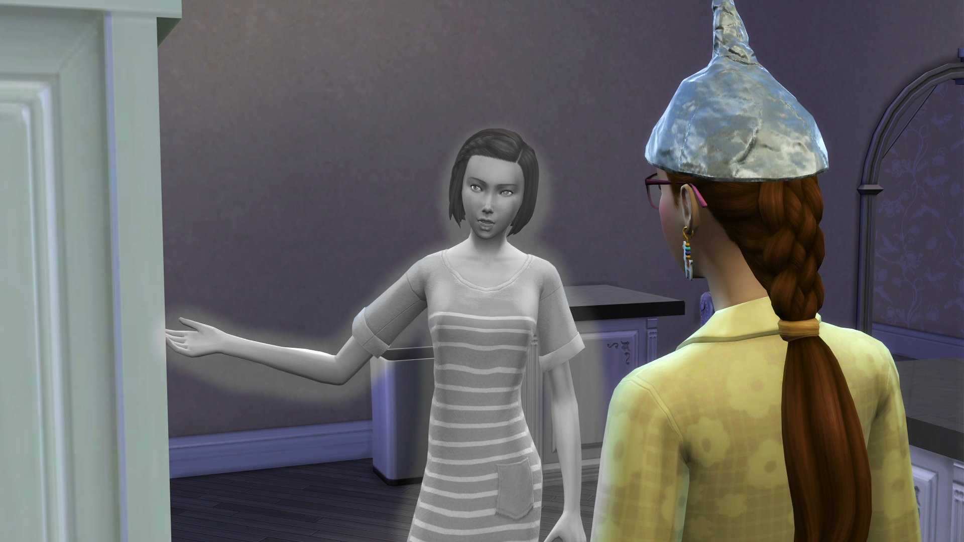 Weird? Jessica scratched her tinfoil-covered head as she conversed with a ghost in a vampire’s kitchen while she waited for a crypt to be opened. “Should we stop?”