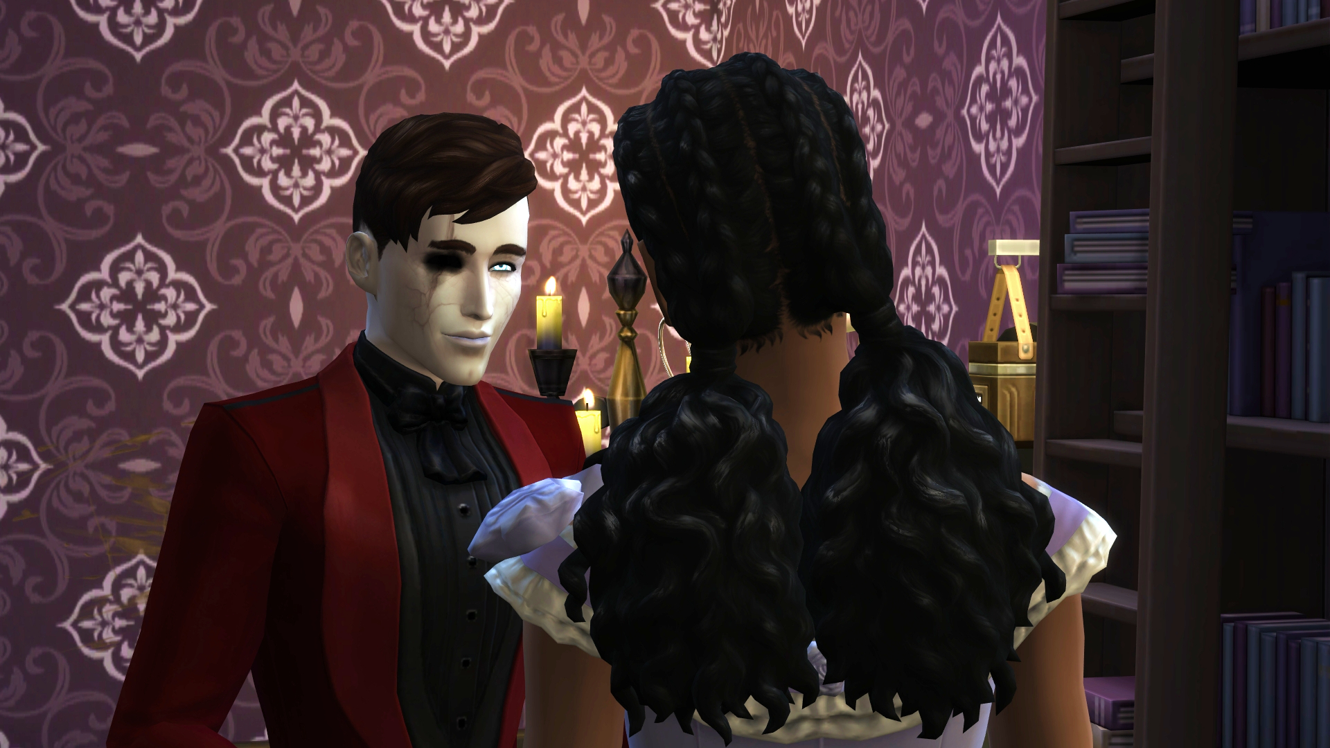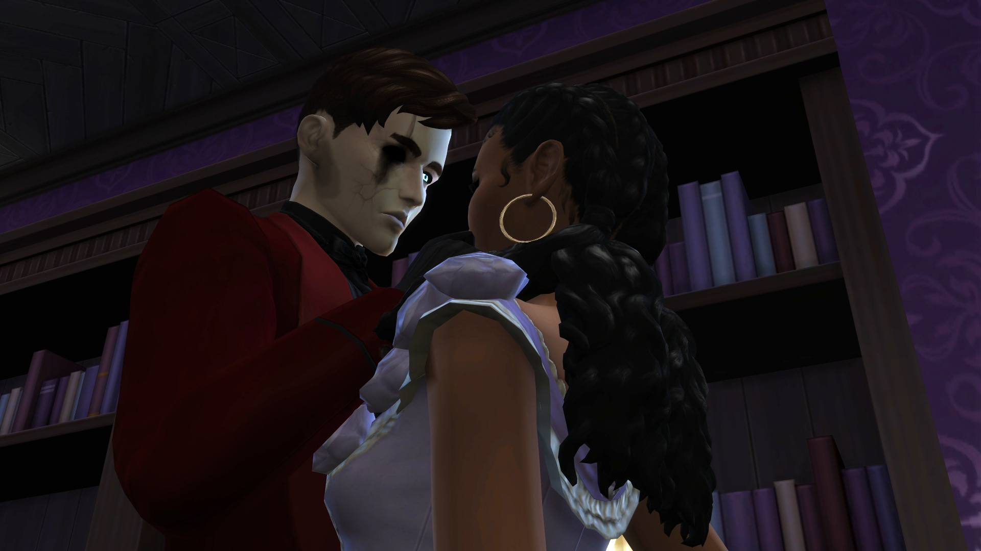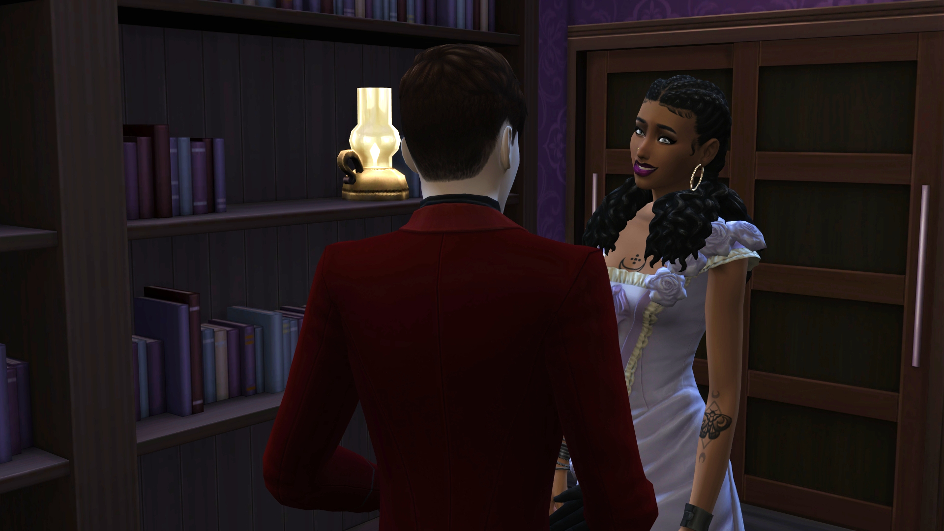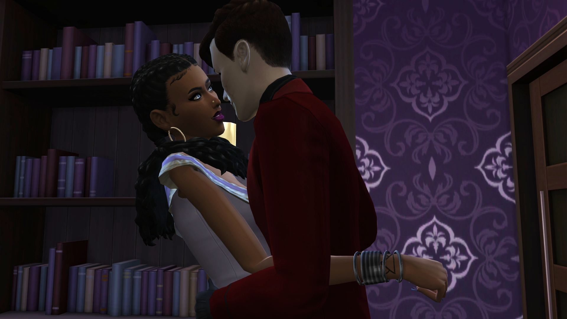 “That dress is nice. And never mind the socks. You can still give me a present,” he growled, advancing on her again, this time pulling at her corset strings that seemed to unravel easily at his touch. She slapped his hands away.