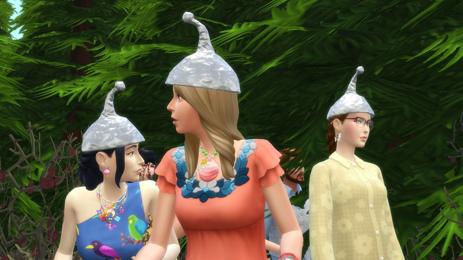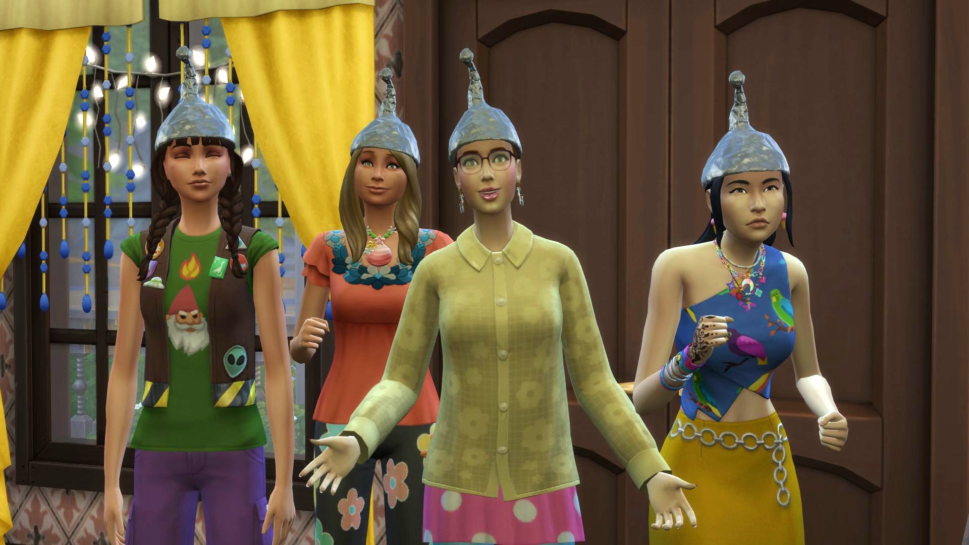She didn’t have time to yearn for long though. The door burst open and a quartet of badly-dressed women in a tinfoil hats burst through.