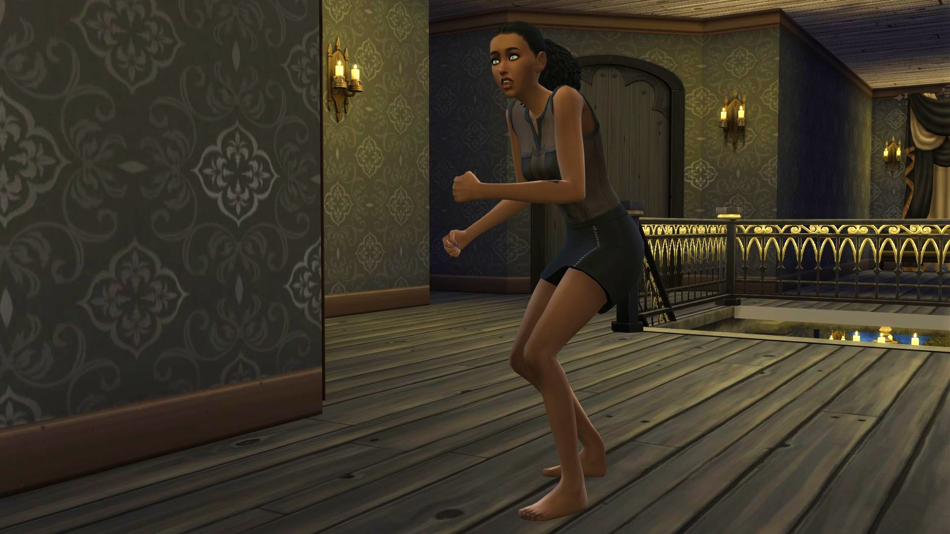 I settled back against the door to the basement, listening to the quiet of the manor until what sounded like a wardrobe falling over upstairs caught my attention.