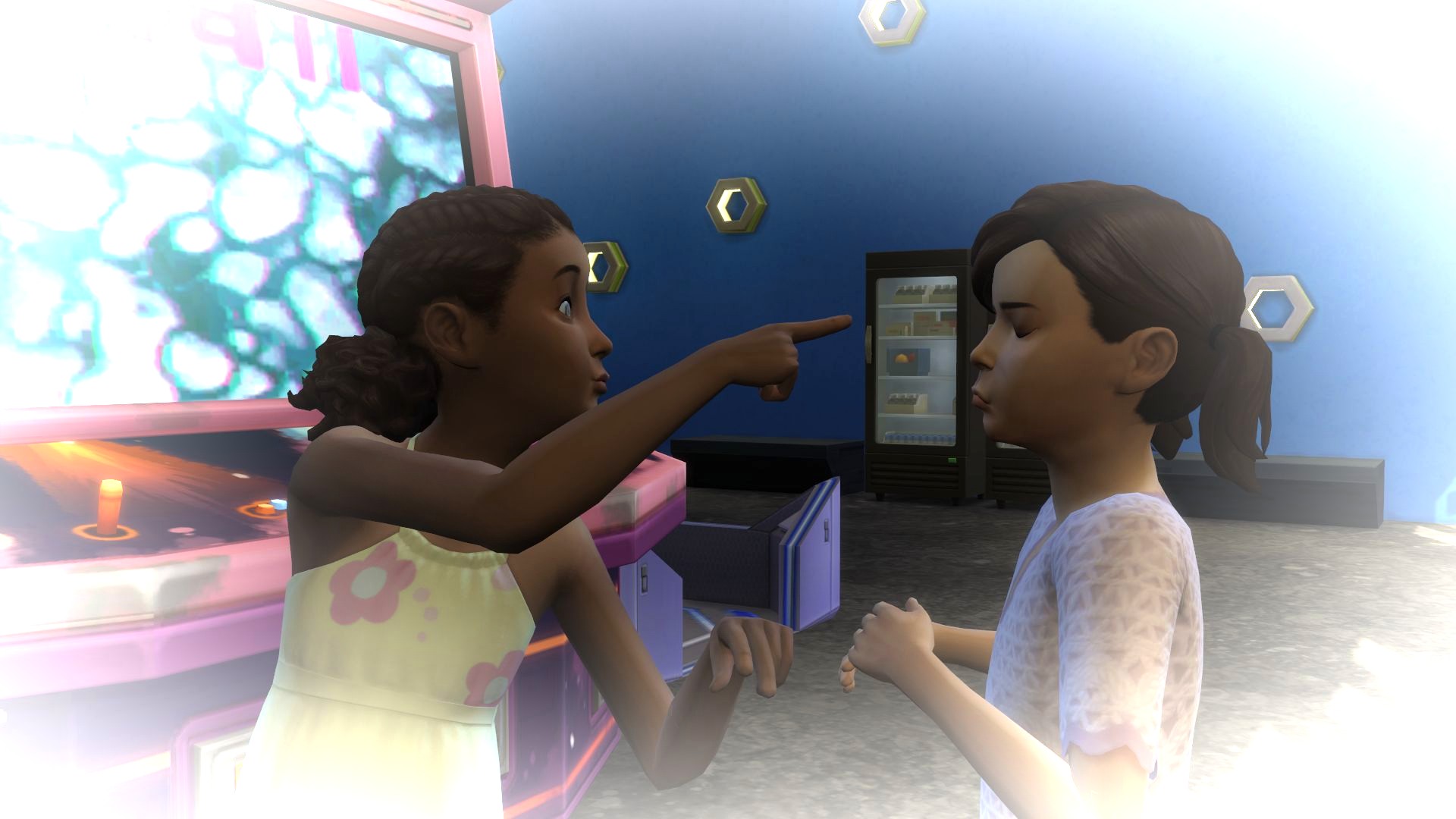Melinda rolled her eyes. “So, you cheat then. You’re going to get us kicked out of the arcade!”