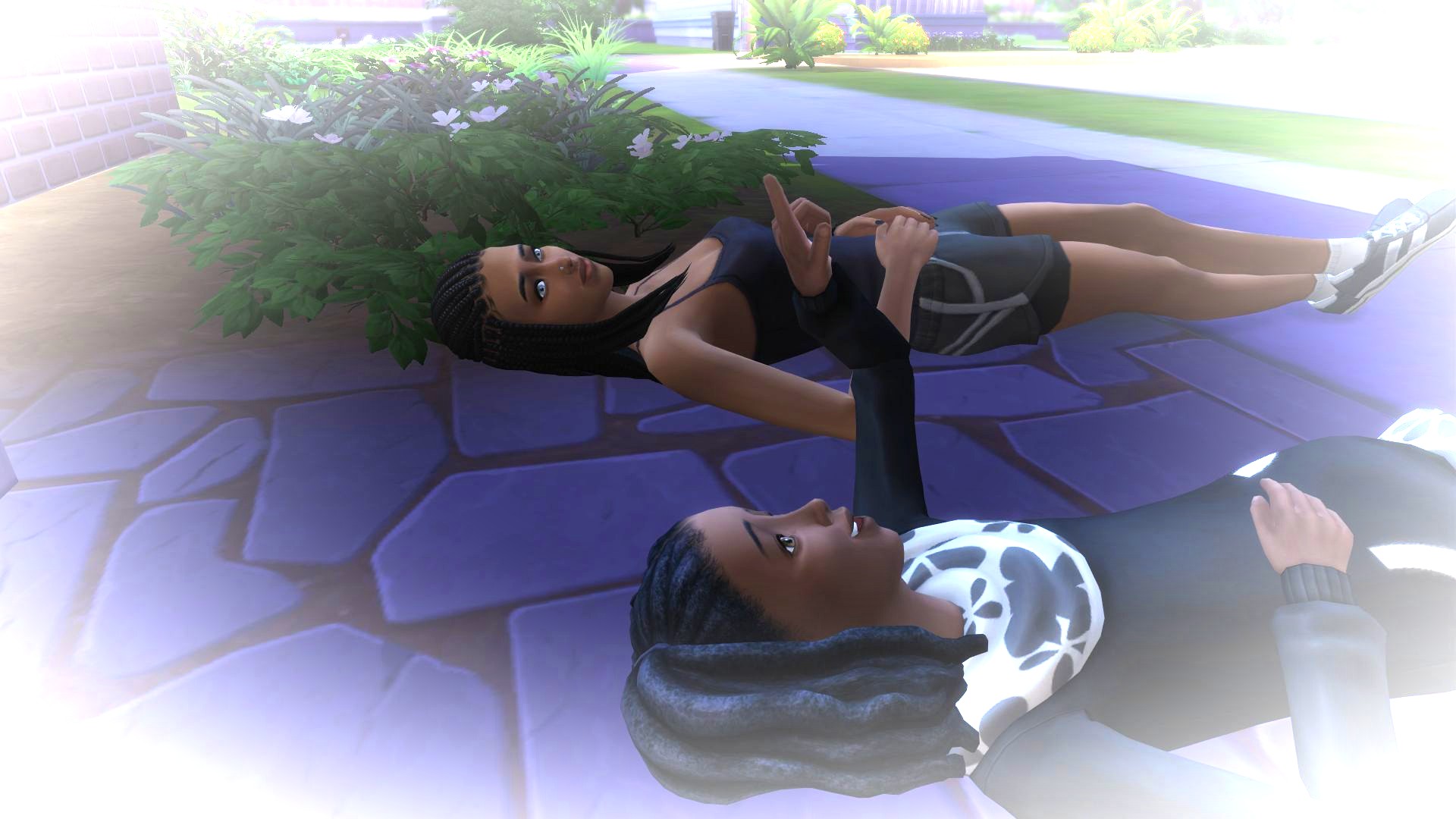I try to get up and in a flash, they’re both beside me.