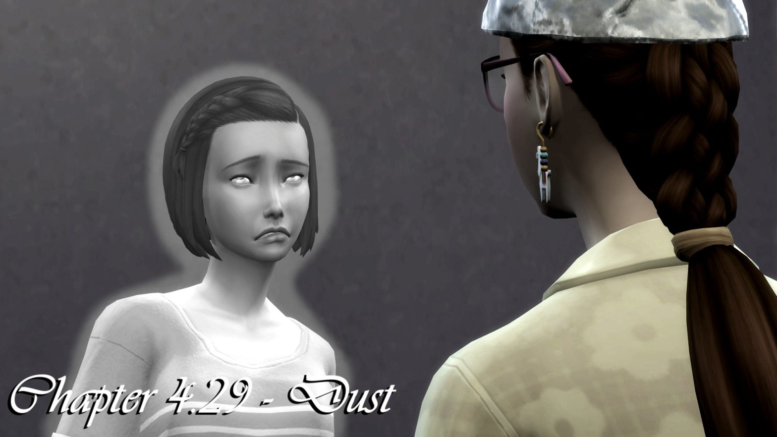Note: my game has the ‘occults keep losing their facial markings and eyes’ bug and I couldn’t be bothered to keep drawing them on manually, so there are inconsistencies in their pictures. Kitty’s second vermouth and her rendition of Flangeslap’s 5th piano concerto were rudely interrupted by the sound of Seth falling from the parapet.Continue reading “Chapter 4.27 – A Spooky Story”